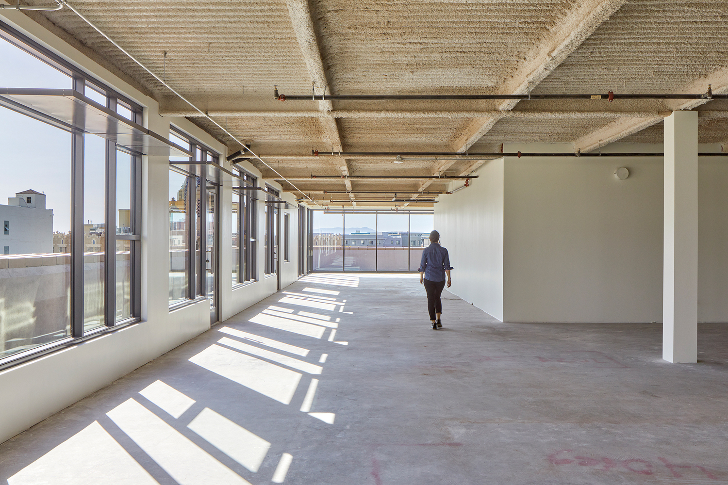 - Delicate Engineering – The building's location directly adjacent and above the 19th Street BART Station warranted a sensitive seismic strengthening solution. Invisible to the eye, micro piles were added 60' deep at multiple locations to eliminate added pressure on the BART tunnel. A 12" thick, heavily reinforced concrete core (housing restrooms and shafts) that extend the height of the building, provides lateral strength and eliminates the need for bulky brace frames at the building perimeter.