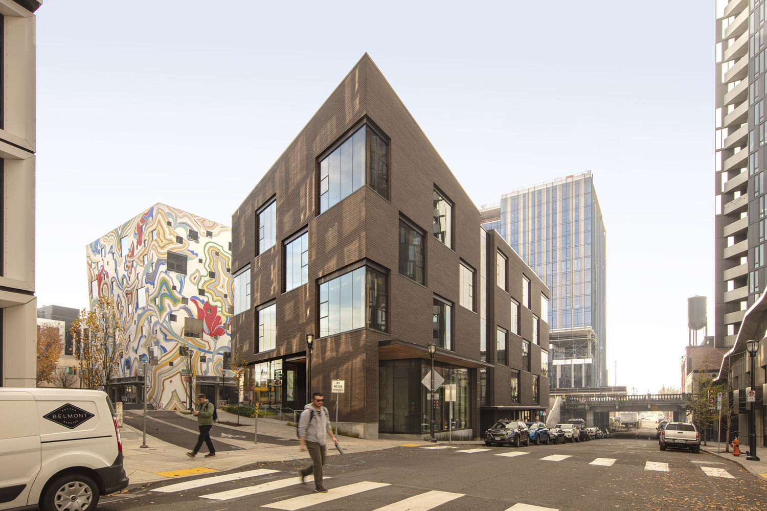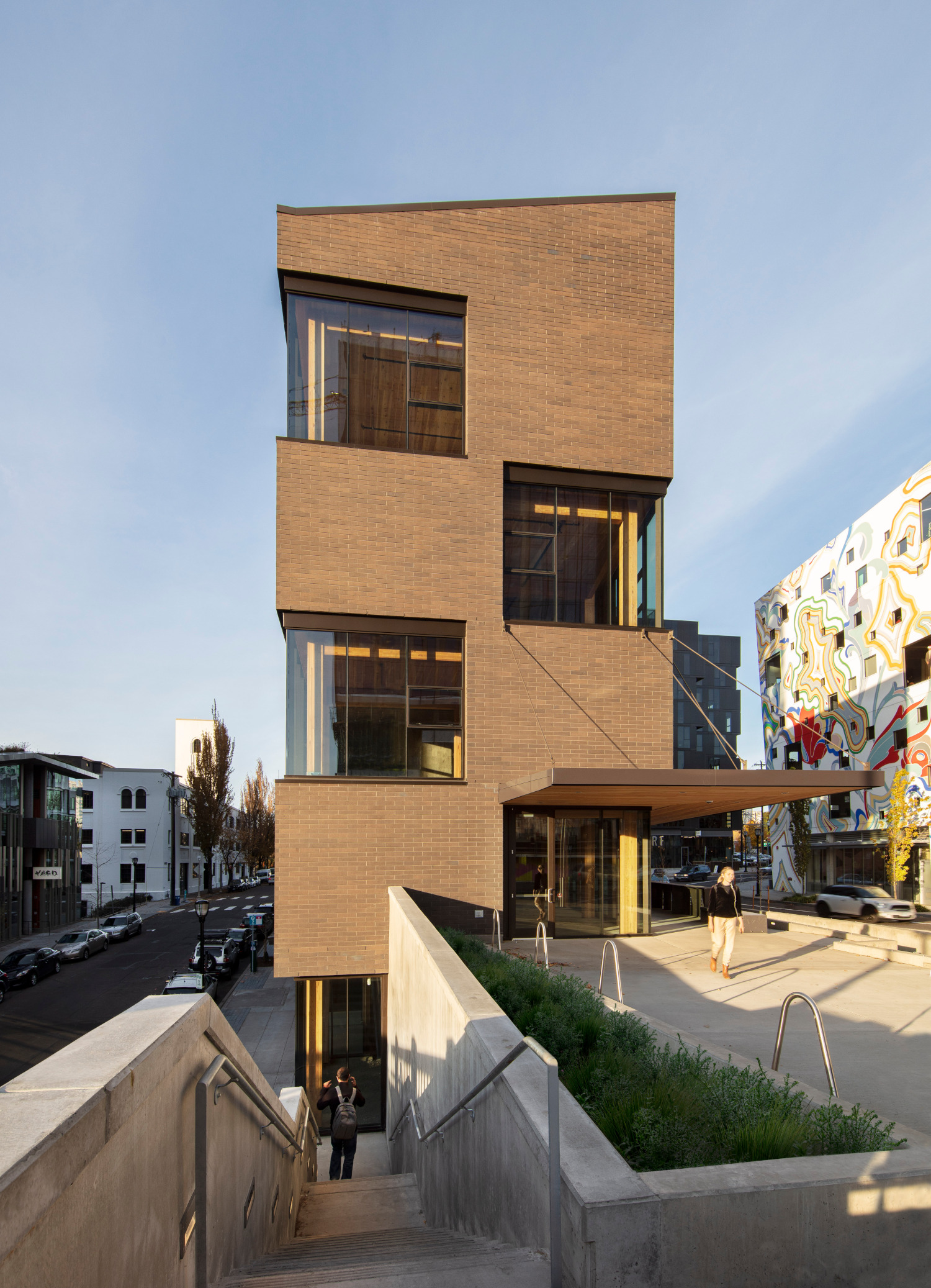 A leftover berm space was created when the City of Portland constructed a new one-way Couch Street couplet, reconnecting the roadway to the Burnside Bridge. Skylab and Key Development reimagined this small 9,000 sf lot as a new development and proposed a new building concept exclusively focused on pedestrian, bicycle and public transit access called Sideyard.